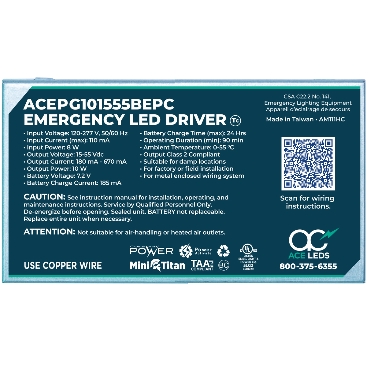 The breakthrough behind the Mini-Titan™ Emergency LED Driver lies in a re-engineering of ACE LEDS’ lithium-ion battery architecture. By miniaturizing the battery itself—rather than simply reshaping the enclosure — ACE engineers significantly reduced overall driver size while preserving performance, reliability, and lifespan.